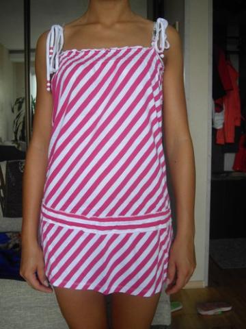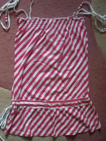 Nešiota,stilinga,labai gražaus rašto tunika.Dydis S/M,kartais tinka L.Užsiriša apatinėje dalyje,taip pat yra petnešėlės (atsirišamos ) viršutinėje dalyje.Vuršutinės dalies šoninės gumos nedaug patrukynejusios,bet to nesimato ir viskas gerai laikosi :) gra