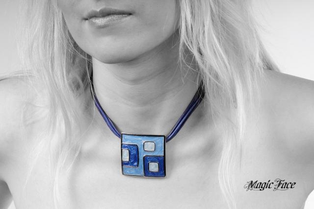 Vasariškas kaklo papuošalas. Pagamintas iš metalo ir dengtas emale. Siunčiu į visus miestus. Yra papildoma grandinėlė ilgiui reguliuoti. www.fotki.com/zalvaris Kaina 25 lt.