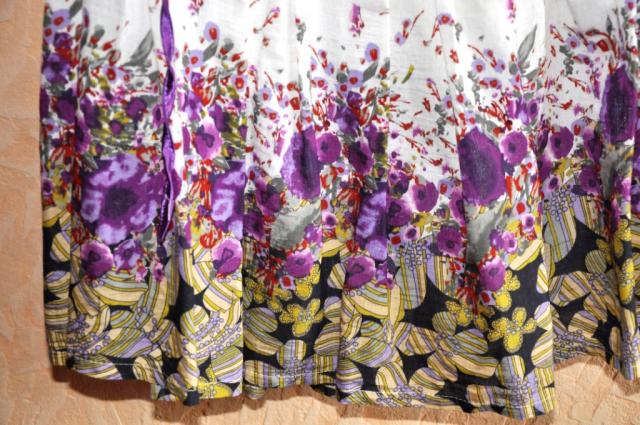 Vasariškas baltas sijonėlis su violetinėmis gėlytėmis. Visiškai naujas.