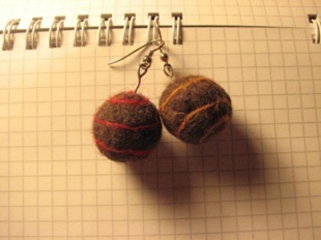 Nauji rankų darbo vilnoniai auskarai rutuliai.