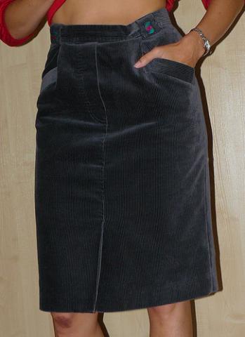 Pilko gan storo velveto elegantiškas sijonas su kišenėmis, siuvėjos susiaurintas iki 36 dydžio.