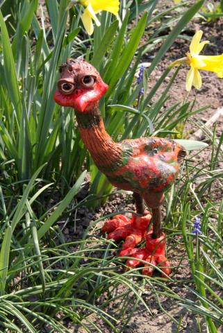 Vienetinis rankų darbo šamotinio molio paukštis.Raudono paukščio aukštis 30, plotis 9 cm. Kaina 35 lt. www.fotki.com/laukokeramika