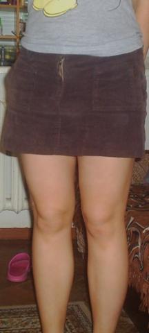 Vilvetinis tamsiai rudas mini sijonelis, gerai tiek ziema, tiek vasara. Uzpakaliniu kiseniu krasteliai issiuvineti karoliukais.