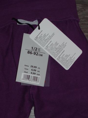 .Visas kelnyčių ilgis ~ 53cm Vidinio rieto ilgis ~ 32cm Iki klynuko ~ 21cm (matuota su visa storesne juosta) Per liemenį ~ 46cm (ant gumos, todėl dar tempiasi, nors ant etiketės rašo 50-51cm). Viršuje yra plati juosta, kuri atsilenkia arba kad nebūtų plika nugarytė, galima ir nelenkti. Priekinėje dalyje šonuose yra dvi kišenėlės. Tinka 1-2 metukų mergytei. Dydis 86-92. Mažai nešiotos, nes greit išaugome:( Dar tėbėra likusi etiketė:). Yra mažas defektukas - virtome, todėl per kelėnus paliko neryš