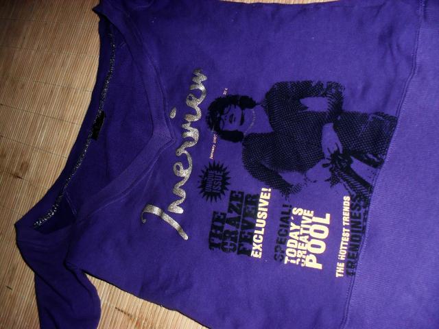 Violetinis megztukas ilgom rankovėm, apsirengus nedengia pečių