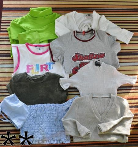 Visi rūbai kuriuos matote nuotraukoje parduodami už 35lt litus. dydžiai nuo XS iki S. Rinktis negalima.Grąžinti negalima. Paduoda tik Kaune. Klausimai giedrusia1@gmail.com nr: 860603257