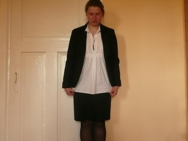 viskas, balti marskineliai.Sijonas,Svarkelis juod