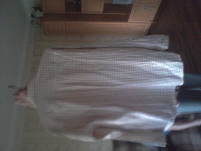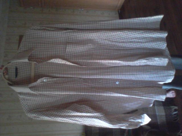Vyriski marskiniai, balti su orandziniais langeliais..