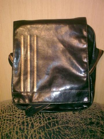 Stilingas juodos dirbtinės odos krepšys su aukso spalvos dirbtinės gyvatės odos detalėmis padės jums išlikti visada organizuotam. Medžiagos: PVC, poliesteris, geležis. Išmatavimai 28 х 24 х 6 см
