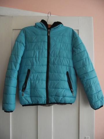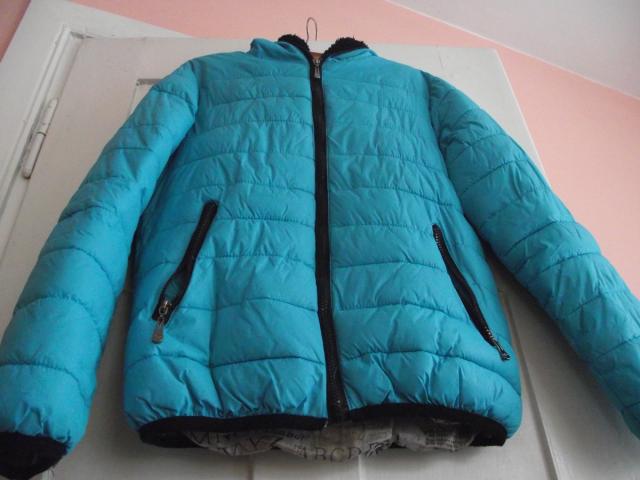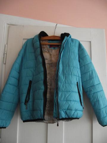 Žydros spalvos striukė. Dėvėta, bet dar labai geros būklės. Dydis parašytas XXL, bet ši striukė akivaizdžiai sumažinta, nes pati dažniausiai dėviu drabužius L dydžio. Iš vidaus nėra kailiuko, tad tokia labiausiai tinkama rudenį ar ankstyvą pavasarį devėti. Puikus drabužis!