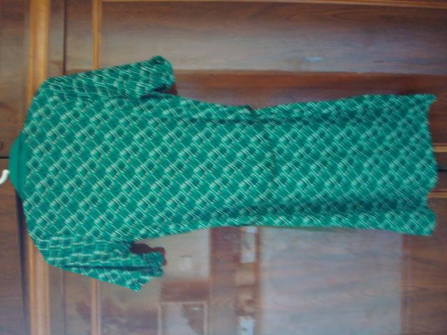 H&M firmos zalia suknele, iki keliu, susakstoma kaip chalatas, su plonu pintu dirzeliu.
