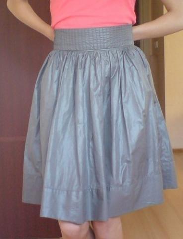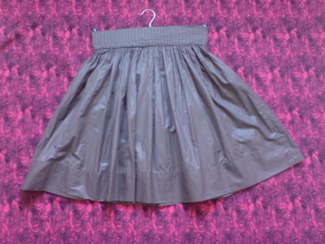 Labai įdomus sijonas,dėvėtas vieną kartą.Audinys primena ploštinį ir yra truputį blizgus,tarsi impregnuotas.Juosmuo visiškai nesitampo,šone yra užtrauktukas.Dydis rašo L,tai tokiu atveju jis turėtų būti nešiojamas ant juosmens,bet kadangi aš S ...>