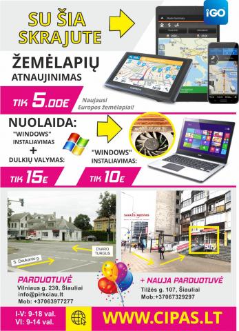AKCIJA žemėlapių naujinimas tik 5 Eur + kompiuterio remontas Kaip bus suteikiama nuolaida? LABAI PAPRASTAI! Jums tereikia išsisaugoti šios skrajutės nuorodą / nuotrauką ir kreiptis pas mus: Vilniaus 230, Šiauliai arba Tilžės 107 (šalia saulės miesto). +37067701977 Tik su šiuo kuponu pasiūlysime geriausias kainas: -windows perrašymas 10 eur. -windows perrašymas+dulkų valymas 15 eur. -navigacijų žemėlapiių naujinimas 5 eur. KITI MIESTAI: Galime užsakyti kurjerį, kuriam atvykus pas jus, jūs padu