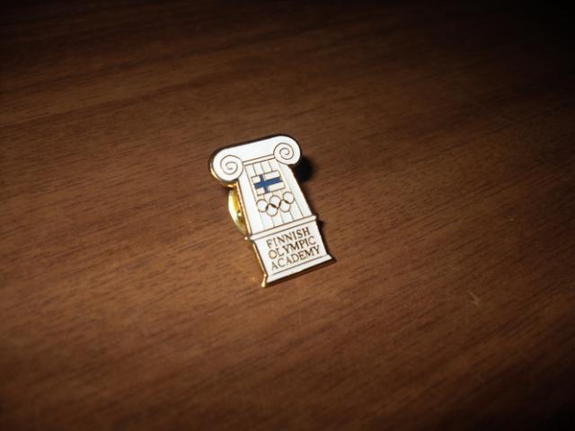 Tai puikus suomiski zenkliukai ant vieno suomiu veliava su olimpiniais ziedais ant kito parasyta Finnish olimpic academy ir taip po gi veleva su ziedais