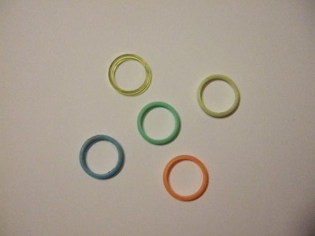 5 sspalvoti plastaminai žiedai, skirtingų spalvų