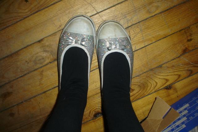Madingi pilki disko inkariukai ;). Kažkur 34, 35, 36 dydžio. Minusas tik tas kad ant kito bačiuko nėra tų gėlyčių pado :))